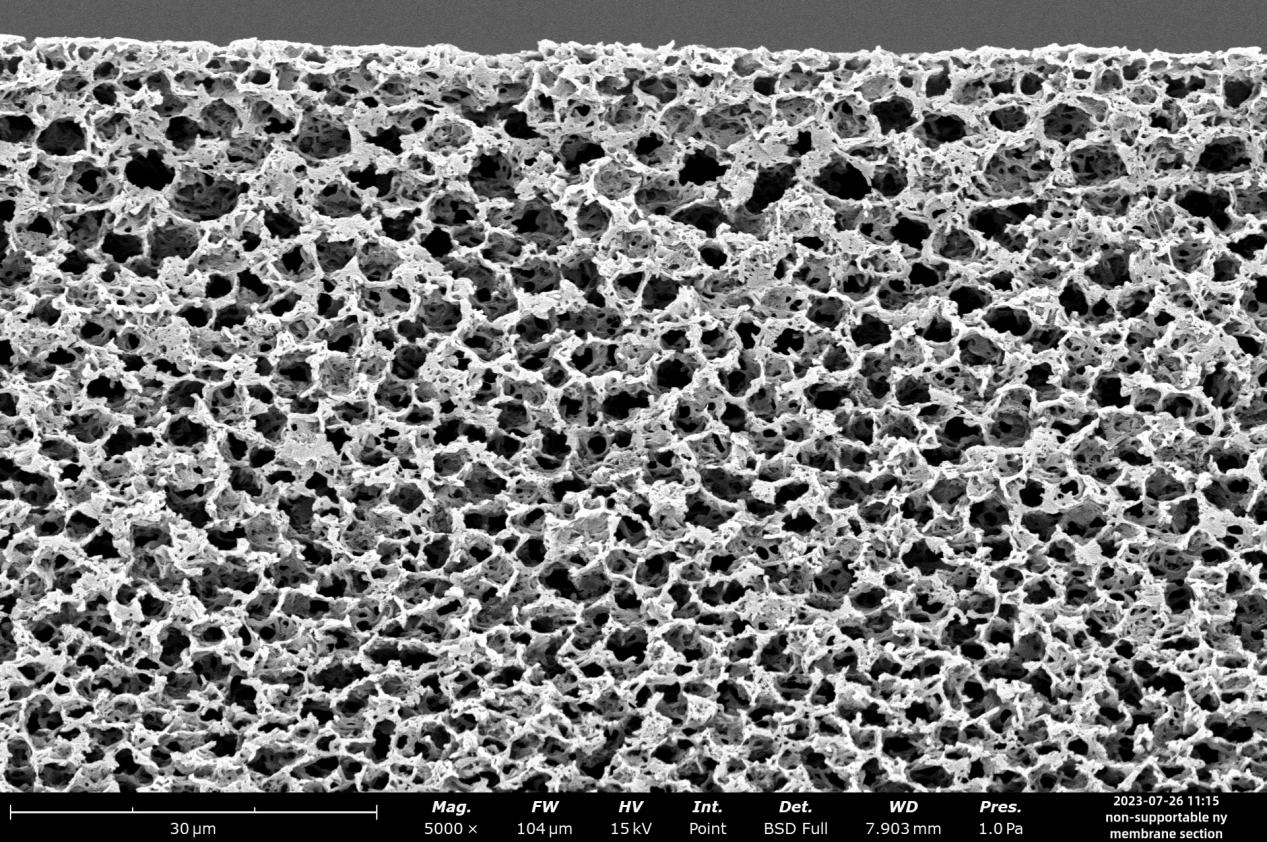 Nylon membrane is one of the most widely used membranes in the pre-treatment stage of sample chemical analysis. Nylon membranes on the market are mainly sandwich coated with a support layer, including Memmbrane Solutions Nylon membrane. Now, Membrane Solutions has also developed a kind of pure Nylon membrane, which is composed of pure nylon 6 without a support layer. It overcomes the leaching problem caused by the support layer of traditional Nylon membranes in chromatographic applications, while also possessing the good chemical stability and solvent tolerance(including DMSO) of traditional nyon membranes. It can effectively filter aqueous solutions, dilute acid-base solutions, and most organic solvents, and is used for the removal and detection of particles, bacteria, colloids, microorganisms, foreign imimpurities, etc.In addition, the pore structure of Pure Nylon membrane belongs to an asymmetric structure with high porosity, which gives it higher flow rate and pollutant absorption performance, makong it suitable for pre-filtration of viscous and high particle content samples.