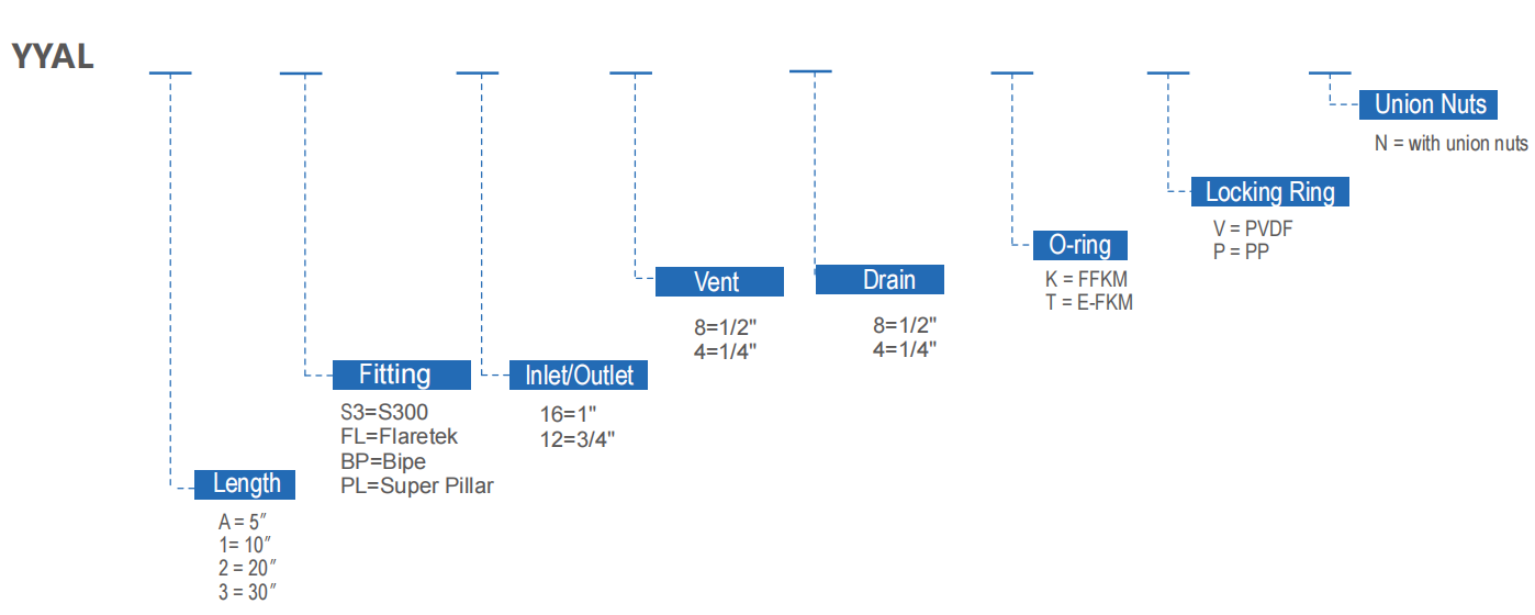 AfsLock PFA filter housing offers an excellent space-saving solution. The filter housing locks the filter cartridge into the housing, allowing simultaneous installation/disassembly of the filter cartridge and the filter housing, minimizing the risk of exposure to contaminants and chemicals.