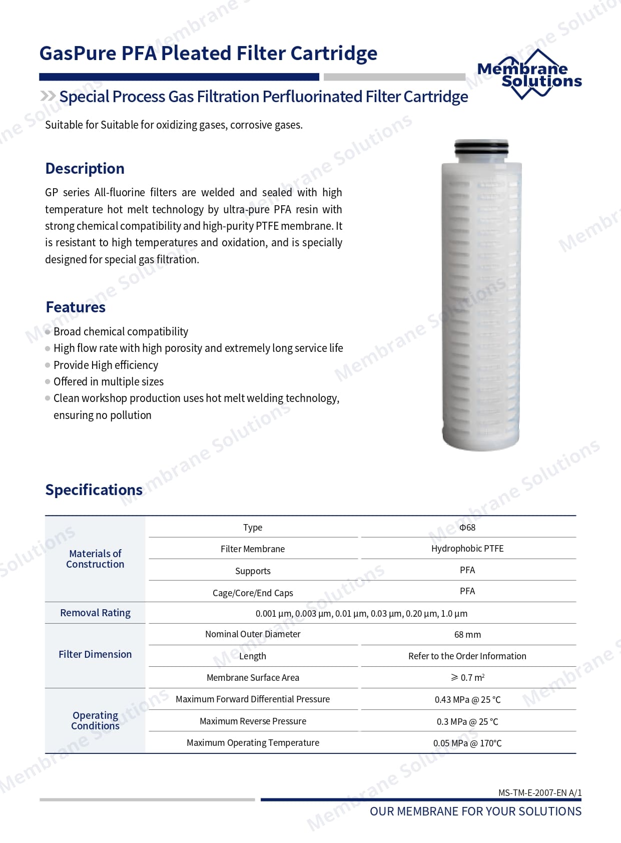 GasPure Series - All PTFE Filters Cartridge for Special Gas Filtration