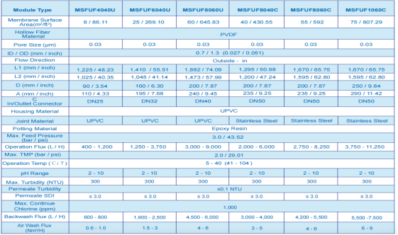 Various size module for option, for connection, MS offer Unions Joint and Coupling Joint for option and its UF membrane size can do 8 to 75m2, which can applied in skid system to large engineering project. check out the module list as below: