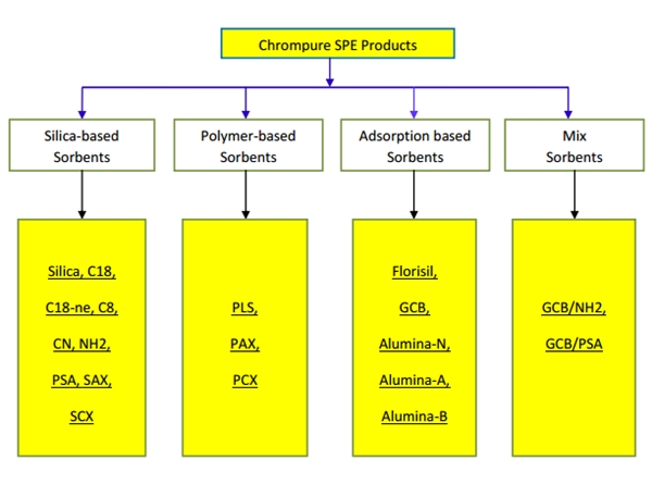 MS offers Chrompure series to our customers, Which have silica-based, polymer and adsorption SPE columns. The filling material includes C18, C18-ne, C8, NH2, CN, PSA, SAX, SCX, PLS, PCX, PAX, Florisil, Silica, Alumina-A, Alumina-B, Alumina-N and so on. SPE column capacities consist of 1, 3, and 6 ml sizes, etc. Our manufacturing process minimizes Variability and improves recovery and clean up procedures. chrompure SPE product have the following several Characteristics.