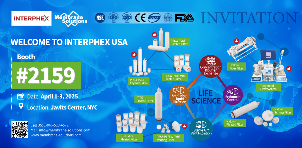 2025 Interphex USA April 1-3, 2025 Booth #2159 | April 1-3, 2025 | Javits Center, New York City, NY Membrane Solutions (MS), a trusted provider of high-performance filtration solutions for biopharmaceutical and industrial applications, is excited to announce our participation in Interphex USA 202...